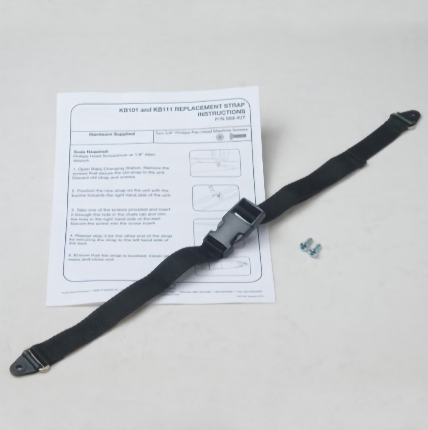 Keep your baby changing tables in top condition for the safety and convenience of guests and their little ones. The Replacement Strap Kit works with Koala Kare™ Baby Changing Station models KB101 and KB111. Comes complete with strap, instructions, and installation hardware.